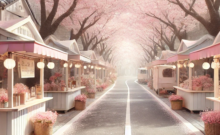 벚꽃과 함께 즐기는 딸기 팝업스토어에서 디저트와 굿즈까지 즐겨보세요. - 포토스팟에서 인생샷 찍기
