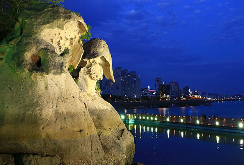 - 특징: 갓을 쓴 듯한 두 개의 바위가 나란히 서 있는 형상으로, 연인과 부부의 사랑 전설이 깃든 곳입니다. 일몰 시간의 감성적인 분위기, 해상케이블카가 지나가는 장면은 사진 명소로도 손꼽힙니다.