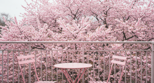 83타워 입구 오른쪽 숨은 명소! 핑크 테이블과 벚꽃이 어우러진 아늑한 분위기로, 자연스러운 벚꽃샷을 남기고 싶다면 이곳을 추천해요.
