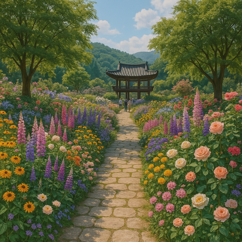 • 특징: 튤립, 수국, 아이리스, 유럽 야생화 등 봄꽃이 수목원 전체를 덮음